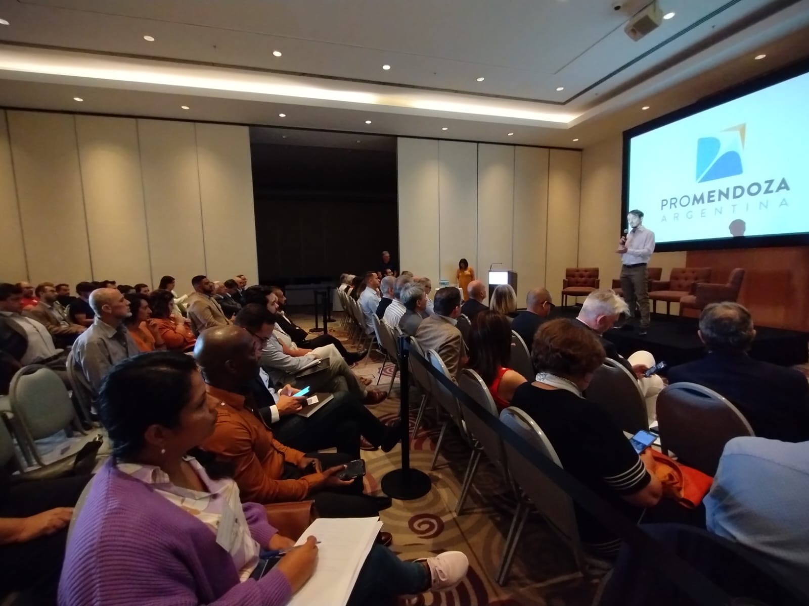 A continuación, Mario Lázzaro abordó las medidas y acciones del Gobierno de Mendoza para fomentar el sector audiovisual. Destacó los apoyos financieros a través de los programas Mendoza Activa y Cash Rebate. Explicó que, al final de las exposiciones, los embajadores tendrían oportunidad de conversar con más de 20 empresas audiovisuales presentes en el encuentro.