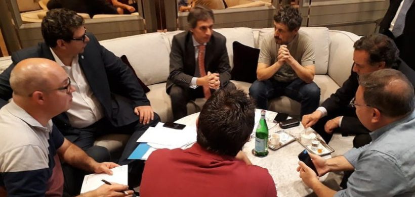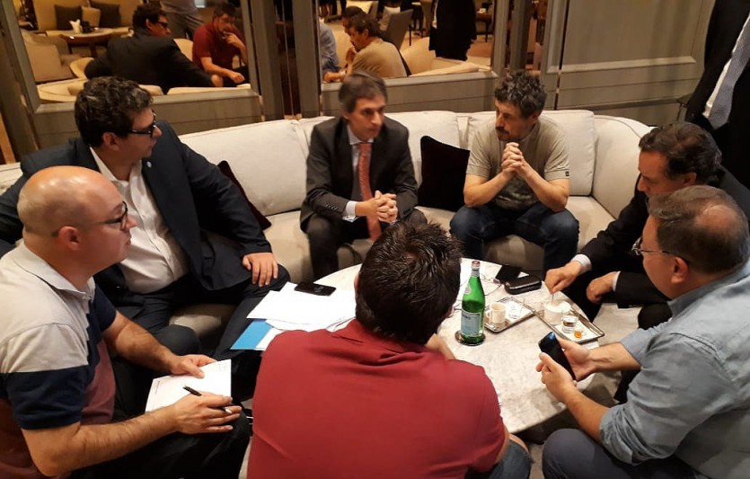 Kerchner y Barttfeld se encontraron en el hotel en donde se aloja por un día la delegación mendocina. Hicieron una previa de lo que puede concretarse mañana en la visita al hub en Singapur e intercambiaron información económica de este país particularmente y de la relación comercial con Argentina.